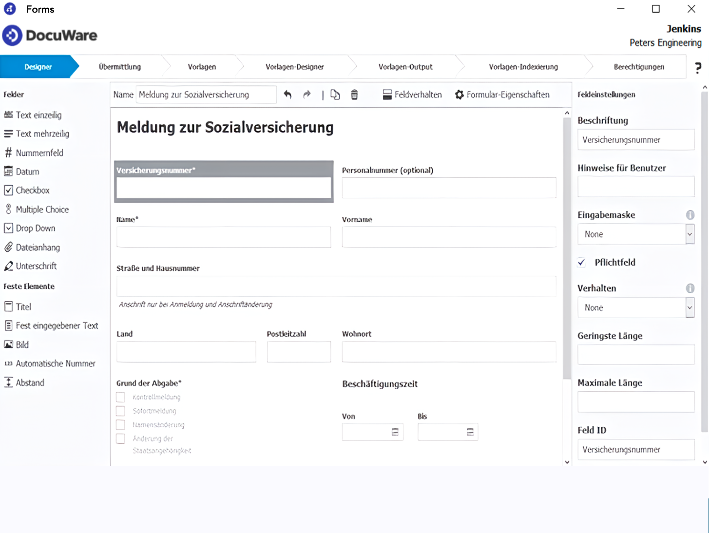 DocuWare Forms vereinfacht die Datenerfassung durch moderne, webbasierte Formulare, die auf jedem Gerät verfügbar sind. Verabschieden Sie sich von unleserlicher Handschrift und fehleranfälliger manueller Eingabe. Intuitiv gestaltbare Formulare erfordern keine Programmierung und bieten umfassende Optionen wie Textfelder und Datei-Uploads. Nahtlos in DocuWare Workflows integriert, automatisieren sie Prozesse wie Bestellungen und Neueinstellungen. So erhalten Sie präzise, strukturierte Daten und steigern die Effizienz Ihrer Kernprozesse.